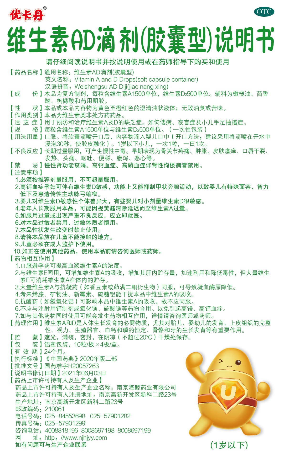 【規(guī)格】每粒含維生素A1500單位與維生素D2500單位。(一次性包裝)